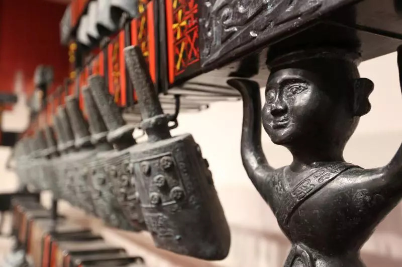 此外,在閔博民族樂器常設展還有“金石厐隆”多媒體互動區、“敦煌樂舞”多媒體秀場、“族樂錦繡”多媒體投射互動區等新穎的體驗方式。走入“金石厐隆”觀眾能夠身臨其境地感受古金屬樂器的悅耳奏鳴,還可以欣賞自己做譜編曲后被奏響得美麗樂章。