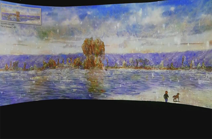 沉浸式的觀感體感:超過180度的環抱包圍圈,結合特定的燈光、音箱系統、數字影片,給參觀者營造出沉浸式的觀感氛圍,達到身臨其境的觀感體感;