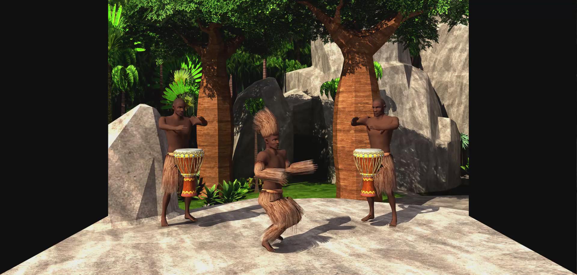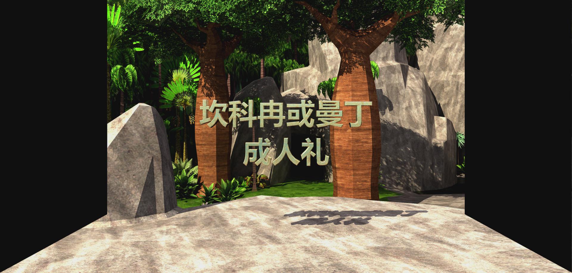 坎科冉是塞內(nèi)加爾和岡比亞的曼丁人地區(qū)的一種成年禮,相當(dāng)于“卡薩曼斯”(Casamance)。坎科冉儀式主要的特征是:受成年禮者帶著用樹(shù)皮和faara樹(shù)的紅根須做成的面具,穿著樹(shù)葉做成的衣服,用蔬菜漿汁涂畫(huà)全身。該影片利用三維動(dòng)畫(huà)形象描述了坎科冉或曼丁成人禮的效果,體現(xiàn)了曼丁的文化特性,立體效果強(qiáng)烈。