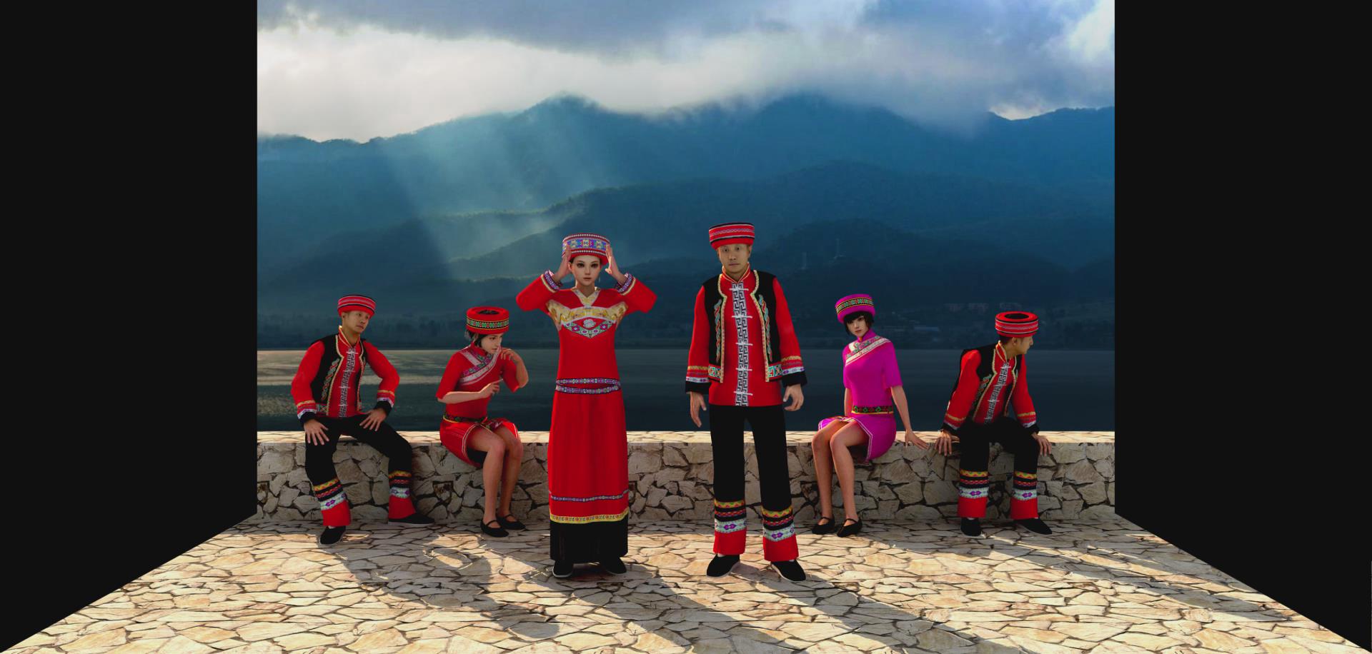 彝族民歌是彝族文化的一個重要載體,它記錄彝民族的歷史、科學(xué)、生產(chǎn)生活、傳統(tǒng)習(xí)俗、哲理、等豐富多彩的彝族文化。彝族民間有各式各樣的傳統(tǒng)曲調(diào),諸如爬山調(diào)、進(jìn)門調(diào)、迎客調(diào)、吃酒調(diào)、娶親調(diào)、哭喪調(diào)等。通過三維動畫展示彝族文化的形式,畫面立體感很強(qiáng),非常吸引人。