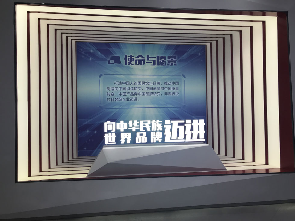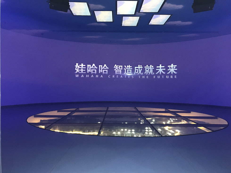 娃哈哈集團數字展廳的設計主要為呈現娃哈哈集團的企業文化。展廳的色彩選用主要為白、紅色、灰、藍四色,整體格調上簡約大氣。展廳在設計上采用了一站式的通道設計,在格局上一目了然。既全方位展示企業理念文化,也全面呈現了集團產品。