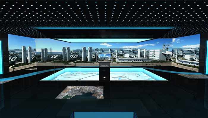 5、電子沙盤設有中央控制系統,包括總體控制,廳內照明、燈飾、計算機、電視機、操作臺以及空調等強弱電系統按照預先編制的運行程序自動運行,從開啟電源到并閉電源,都不需要人為控制,自動運行。